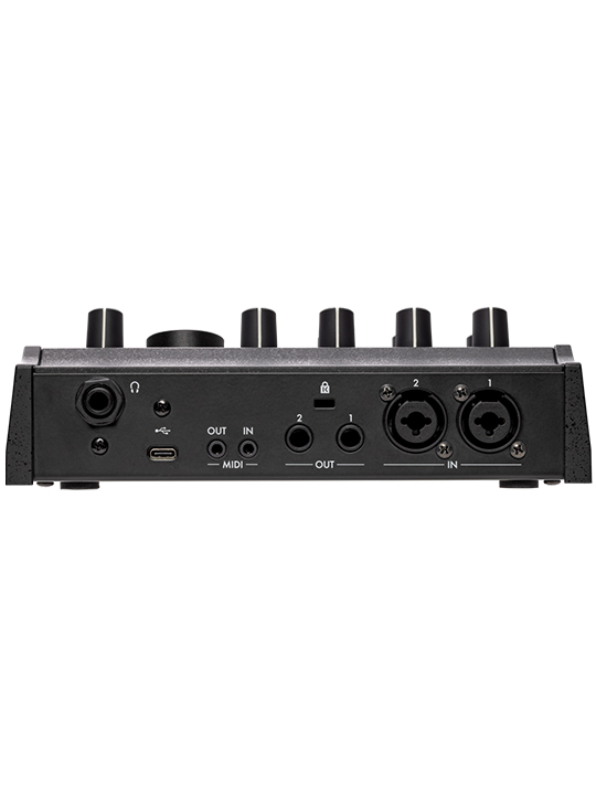 Front-panel knobs provide direct access to essential functions, and zero-latency direct monitoring ensures immediate feedback during recording or live performance. The headphone output can be assigned independently of the main outputs, allowing you to route a click track exclusively to the headphones or monitor cue signals when connected to DJ applications. (*)