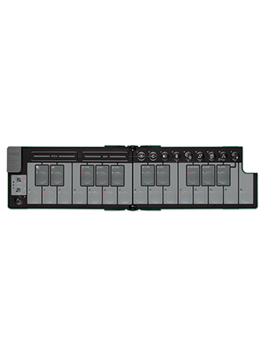 The touch sliders that control Pitch and Modulation can be assigned to control specific CC values or directly play notes in the selected scale! Just glide your fingers across them to unleash new depths of musical design and always in the right key and scale.