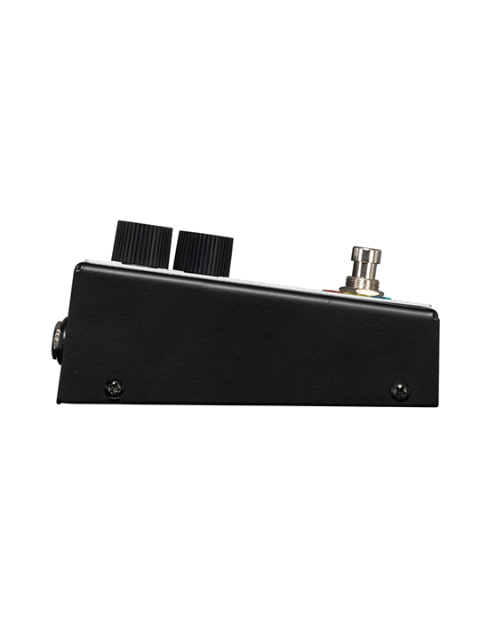 Power On Switch : Incorporated into the input jack. Unplug the input when not in use to prevent battery drain. Remove the battery when the pedal is going to be stored for long periods to prevent leakage and damage.