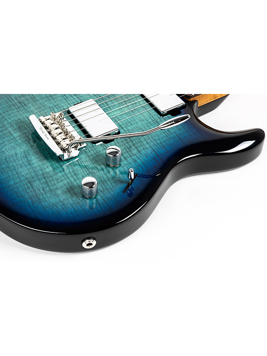 A push-push volume knob activates the Luke 4 HT preamp boost and is factory set to 12db. Via a trim pot inside the control cavity, the preamp can be adjusted up to 20db if needed for heavy rhythm parts or high-octane soloing whenever the user chooses.