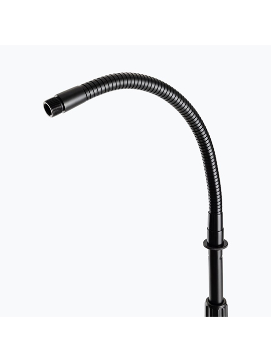 - ขาตั้งไมโครโฟน MS7702B พร้อม Gooseneck ให้การรองรับที่พกพาได้ เชื่อถือได้ ปรับได้ และจัดวางไมโครโฟนได้อย่างแม่นยำ ฐานขาตั้งสามขาที่กว้างพร้อมขาตั้งยางช่วยให้สมดุลและเสถียรภาพที่ดีเยี่ยมสำหรับอุปกรณ์ แม้บนพื้นผิวที่ไม่เรียบ Gooseneck โลหะที่ยืดหยุ่นได้ ซึ่งงอได้ง่ายและคงอยู่ในตำแหน่ง ทำให้ผู้ใช้สามารถจัดวางและปรับตำแหน่งไมโครโฟนได้อย่างมีประสิทธิภาพสูง แกนหลักแบบยืดหดได้ทำให้ปรับความสูงของขาตั้งได้ง่ายตั้งแต่ 32 นิ้วถึง 61.5 นิ้ว สำหรับการใช้งานในหลากหลายสถานที่ รวมถึงสตูดิโอบันทึกเสียงและสถานที่แสดงสด เพื่อการจัดเก็บที่กะทัดรัดและการขนส่งที่มีประสิทธิภาพ แกนด้านบนสามารถเลื่อนเข้าไปในแกนด้านล่าง และขาตั้งสามขาสามารถพับลงได้แบนราบ