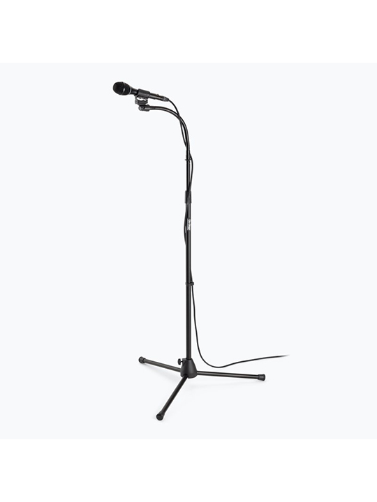 - The MS7702B Mic Stand with Gooseneck delivers portable, reliable, adjustable support and precise placement for microphones. The wide-spread tripod base with rubber feet provides outstanding balance and stability for equipment, even on not-quite-flat surfaces. The flexible metal gooseneck, which is simply bent into position and holds itself in place, provides users with highly efficient mic placement and repositioning. The telescoping main shaft makes it easy to adjust the stand height from 32" to 61.5" for use in a variety of settings including recording studios and live-performance venues. For compact storage and efficient transportation, the upper shaft slides inside the lower shaft and the tripod-base legs fold down flat.