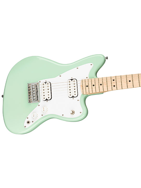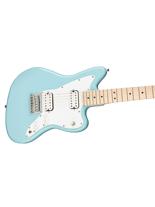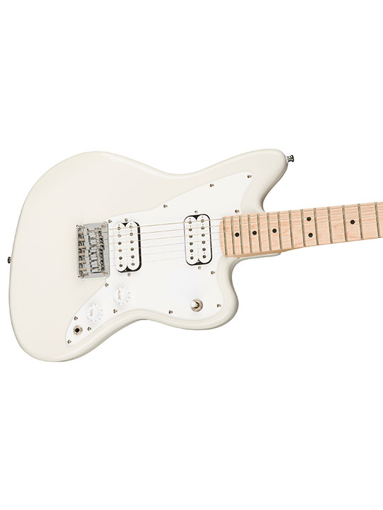 - The Squier Mini Jazzmaster® HH is the perfect companion for players seeking a reduced-size instrument with classic styling and familiar Fender® tone. Highlights include a thin and lightweight body, an easy-to-play “C”-shaped neck profile, dual Squier humbucking pickups with 3-way switching for sonic variety, and a hardtail bridge for solid tuning stability.