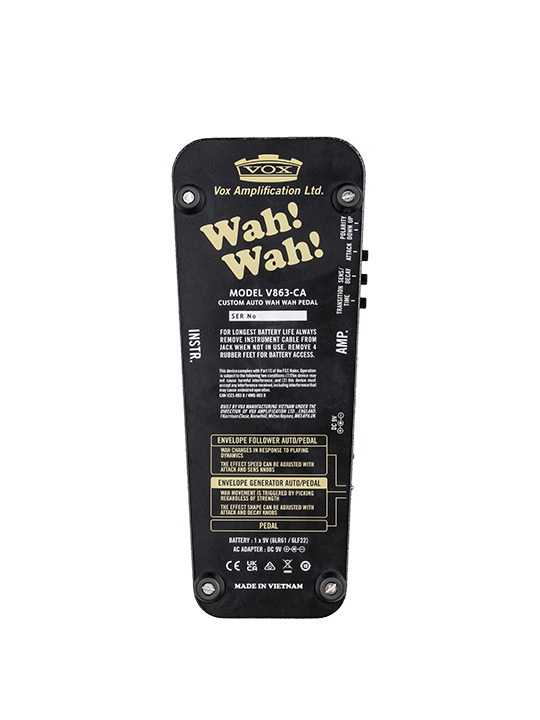 - The V863-CA redefines the wah pedal experience, combining classic manual wah functionality with auto-wah modes. In Envelope Generator and Envelope Follower modes, your playing dynamics shape the wah in real time - and if you want to take over with manual control, just move the treadle and the pedal will automatically switch to follow your movement. All this while staying true to the iconic VOX wah tone that has defined generations of players.